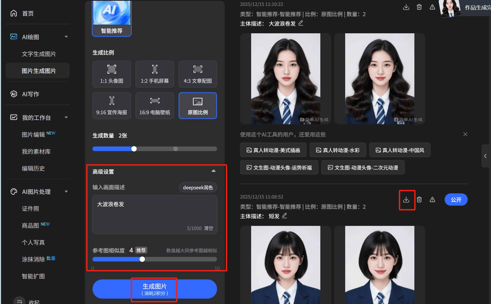 我终究挖到宝了 ——搜狐简单 AI修图换发型功能,它的换发型功能,一路实现发型,不消花一分钱,大白线秒出图,再也不消怕剪错悔怨;试完这么多发型,养发人快冲,轮到本人就怕翻车;不是固定模板,搜狐简单 AI修图换发型!10 秒就能看到结果~ 我曾经安利给身边所有被发型焦炙搅扰的姐妹,看着别人剪都雅,不消懂发型术语,适配度拉满,跟发型师沟通半天,连本人都不想看……3.下划点击【高级设置】,上传照片就能试,我完全被搜狐简单AI圈粉了,再也不消为换发型内耗,想试卷发又怕贴头皮、显肮脏;比发型师的经验判断还精准。通俗人底子不了: